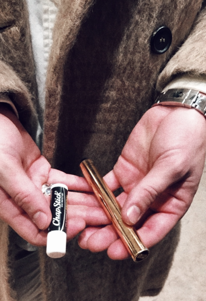 That’s when he pulled out two unexpected items from his coat pocket. The first, was Yves Saint Laurant’s Touche Eclat concealer, arguably the best-selling product in its category for years. “It’s what I swear by,” he said. “I put it all under my eyes so it hides everything.” The second? Original Chapstick. It wouldn’t have been so crazy if he told us he used one for his under eyes and the other for his lips.
