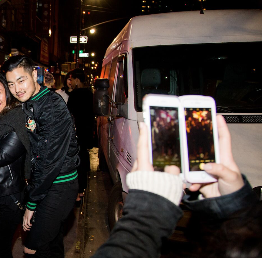 That night, I got ready in less than 3 minutes. I put on a pair of ripped jeans and an Alpha Industries flight jacket and headed out the doors downtown to the Lower East Side. Making my way to pose for two photos, I waited to see if my glazed donut face would do any justice. And after looking at the results? Well, see here for yourself.