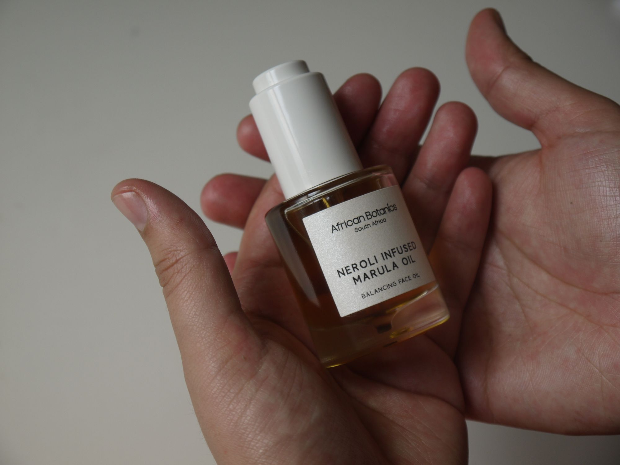 “This is African Botanics Neroli Infused Marula Oil. It’s one of those things that’s so good because it’s so simple. Marula is nice for daytime because it’s really lightweight, especially during the summer. I also find it’s really toning and kind of calming at the same time. I take a couple drops. I want to enjoy every element of skincare.