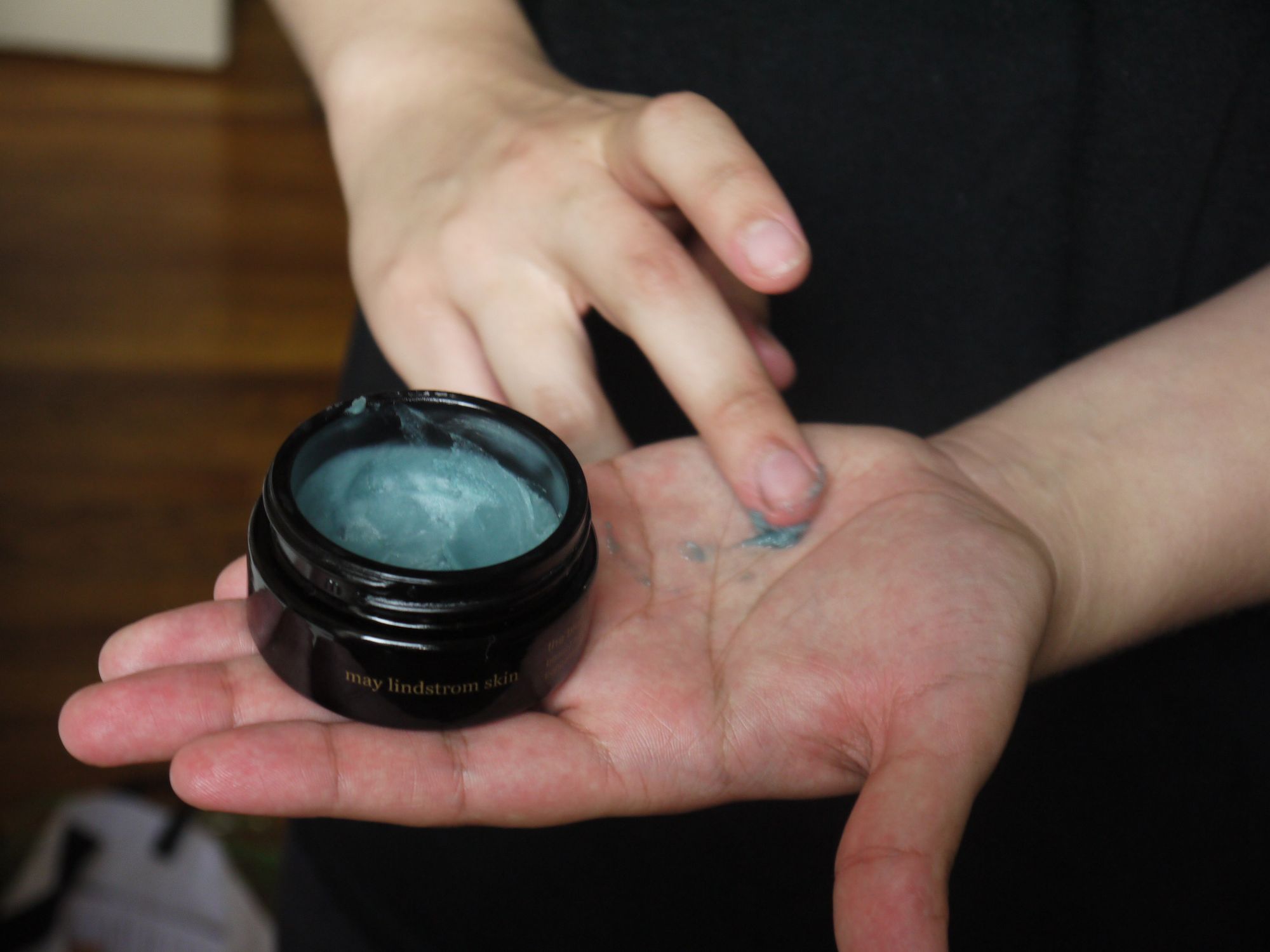 “So while the body oil’s sinking in, I’ll go in with some Blue Cocoon. Blue Cocoon is my favorite skincare product, on the face of this planet ever to exist. It changed the way I thought about skincare. After I used it, I started viewing skincare as self-care. When it’s used on the skin I find it to be very anti-inflammatory, very nourishing, very glow-y, softening. As a skincare product it really performs, but as a vessel of well being, that’s why it’s incomparable to me.”