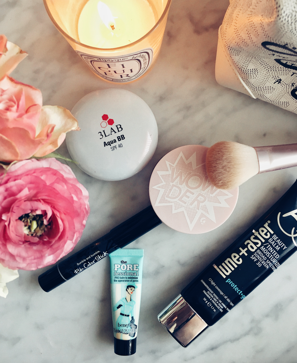 After that, I’ll put on a primer or BB cream to even out my skin, followed by powder to eliminate shine and a lip balm. The BB cream I love is from my local Blue Mercury in Los Angeles. There’s a convenient location right by my house—and they literally have everything I really need, including their in-house line Lune+Aster CC Cream