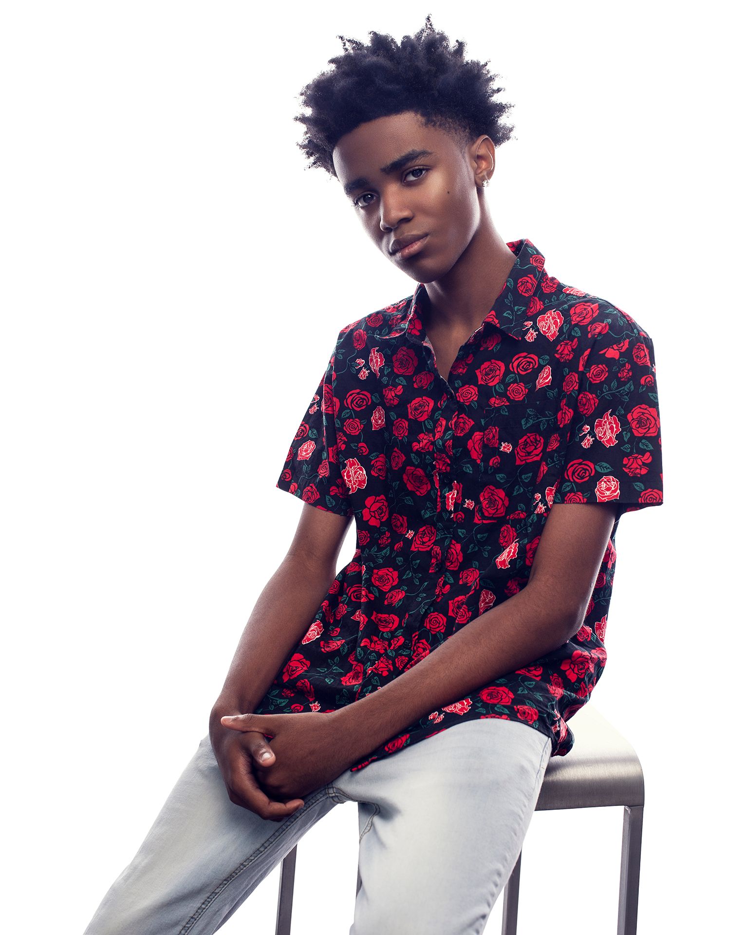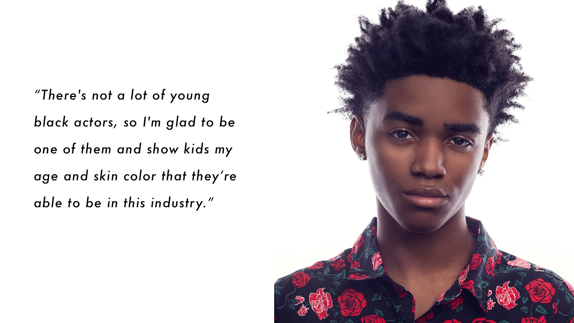 “Acting is about telling stories and I use these characters to raise awareness,” he says. “There’s not a lot of young black actors, so I’m glad to be one of them and show kids my age and skin color that they’re able to be in this industry. They’re able to get paid as much as any other actor. Stay true to whatever you’re doing.”