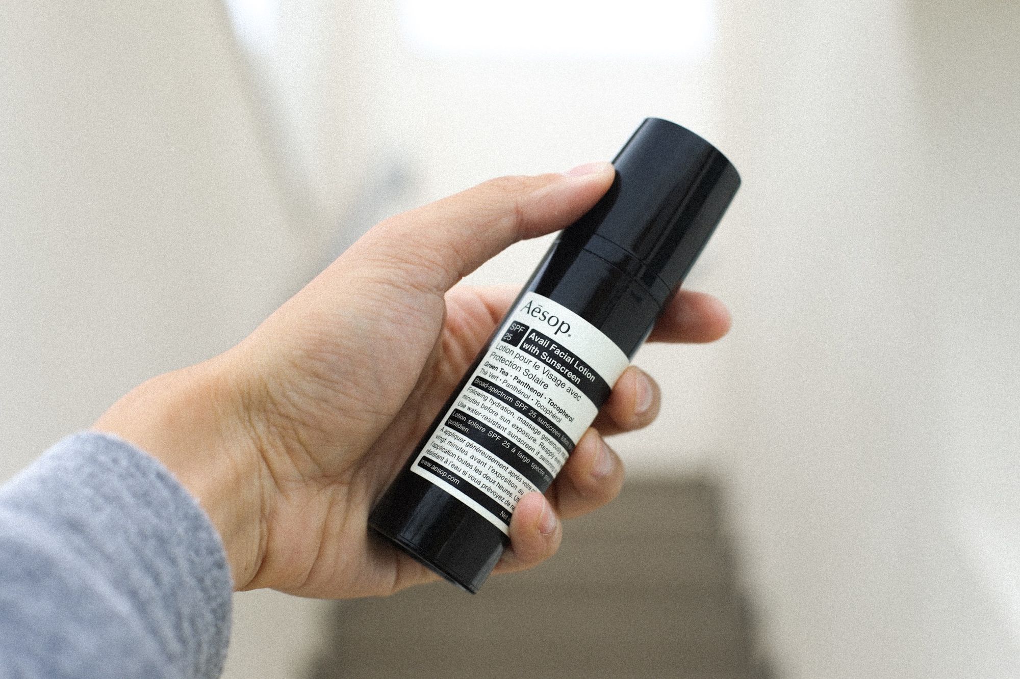Instead, in my bag was something that I was testing. It’s Aesop’s newest SPF and one that took three years to make, called Avail Facial Lotion, in SPF 25. I’m allergic to any sunscreen under SPF 50 just as I am with almond yogurt, but I decided I’d give this one a try.