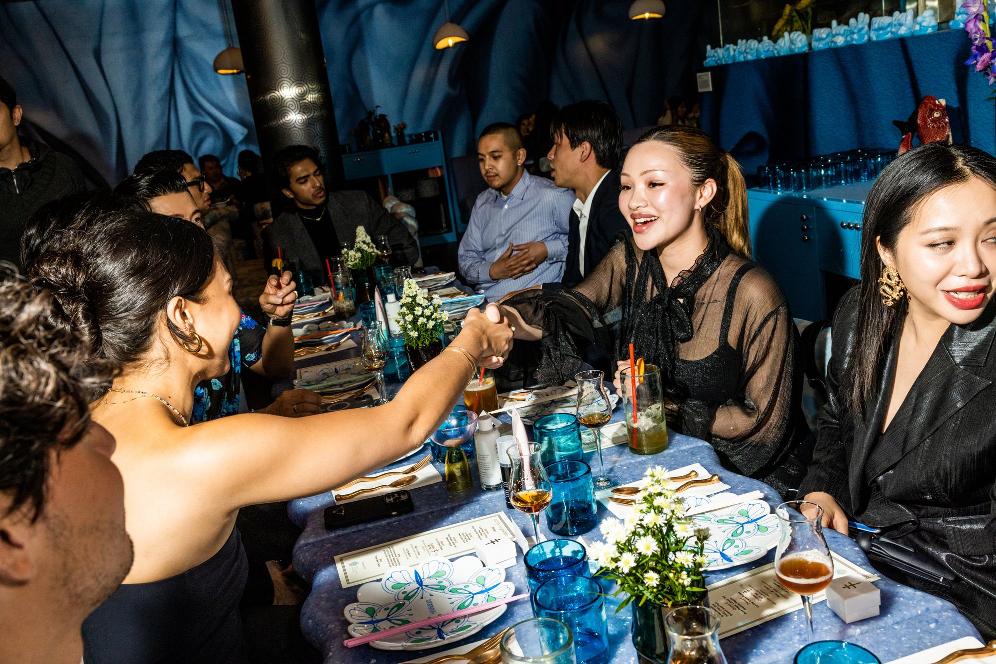 On a Friday night, Humberto, along with David, hosted an intimate dinner sponsored by D'USSE, the cognac brand owned by the rapper Jay Z. The night centered Asian American mental health, a subject that has received the spotlight recently due to the rise of Asian American hate crimes. One, a senseless mass shooting that happened in Monterey Park, steps away from Monarch, and another, in Dallas, where a gunman targeted AAPI.